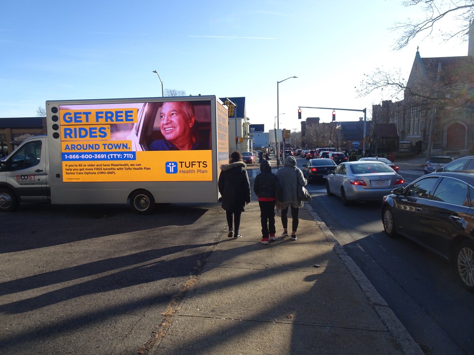 Boost Outdoor Media serves all of Massachusetts with digital mobile billboard truck advertising, from Boston and Boston Metro to Springfield, Cambridge, Worcester, Lowell, Quincy, New Bedford.
